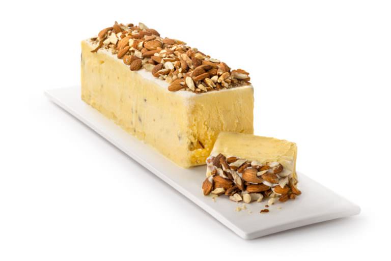 Helado: chocolate con almendras. Dulce de leche casero, charlotte y crema fresca batida.