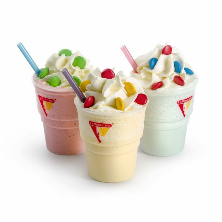 Helado artesanal batido con leche, crema batida y rocklets. Sabores: frutilla, crema del cielo o vainilla. 240 cm2.